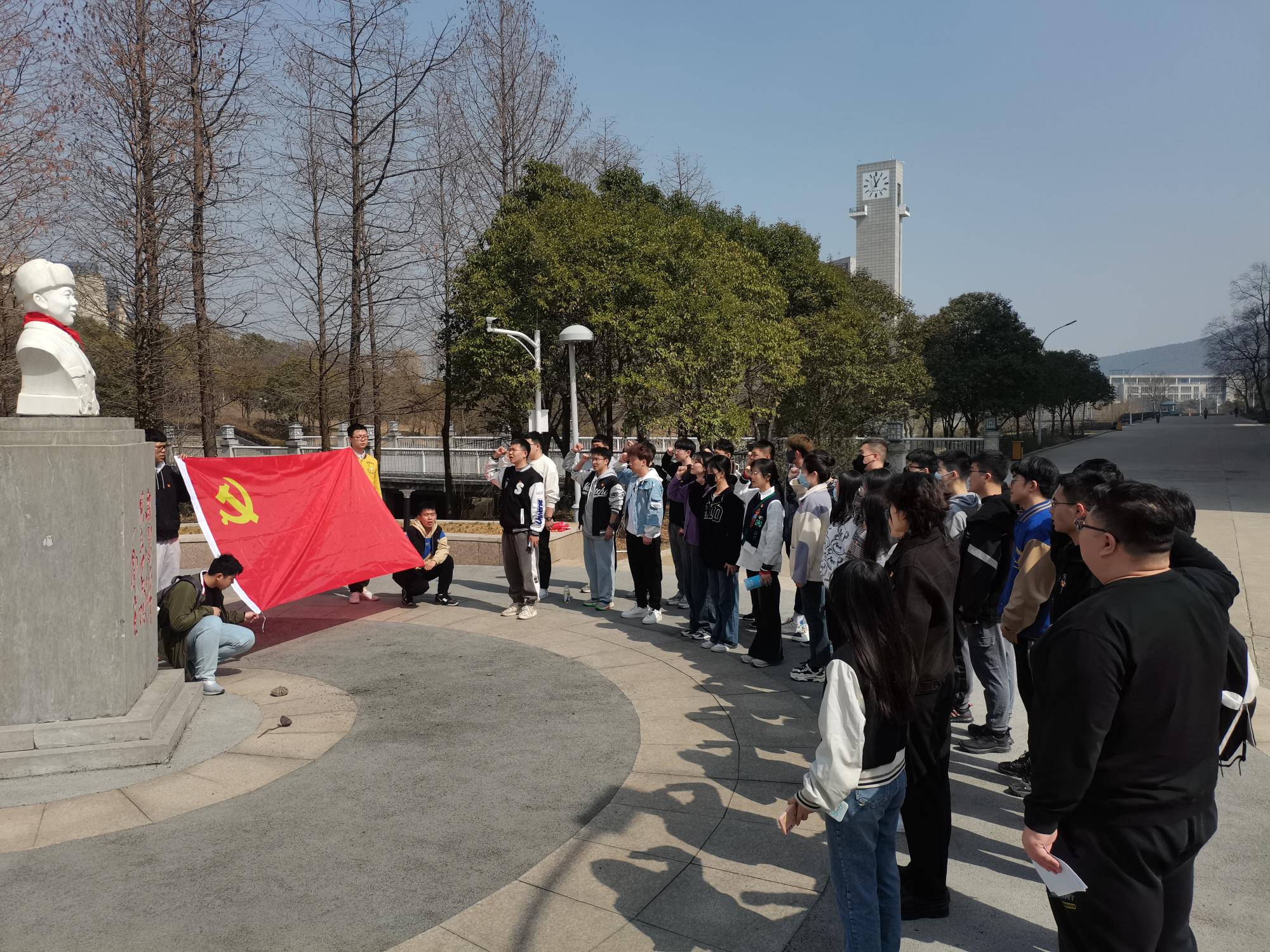 矿大南湖校区博四楼、博五楼内存在有大量的废旧的、随意丢弃的考研书籍,对教室内环境有较大的的影响,同时也是对资源的浪费。我院学生党员工作站组织本科生党员们进入博四楼、博五楼中的阶梯教室整理废旧书籍,将随意堆放在教室前后门、楼道内直饮水机附近无人认领的书籍按照大小、科目等分类,整理好后整齐堆码在原先位置,同时整理了负责区域的杂物。志愿活动后,参与活动的党员到博一楼雷锋塑像处集合,辅导员刘世通老师带领到场的党员面对党旗和雷锋像集体宣誓,重温入党誓词。随后,刘老师结合雷锋精神为党员们上了一堂微党课,他表示:提到雷锋精神大家往往想到的是奉献,但是学习雷锋不仅仅学习的是奉献精神,还有责任、守护、担当、勤俭、忘我、无私和进取七个方面。他告诫大家要时刻提醒自己是一名党员,将雷锋精神的几层内涵贯穿生活、学习、工作始终;同时也需要多学习、多实践,努力成为一名合格的共产党员。