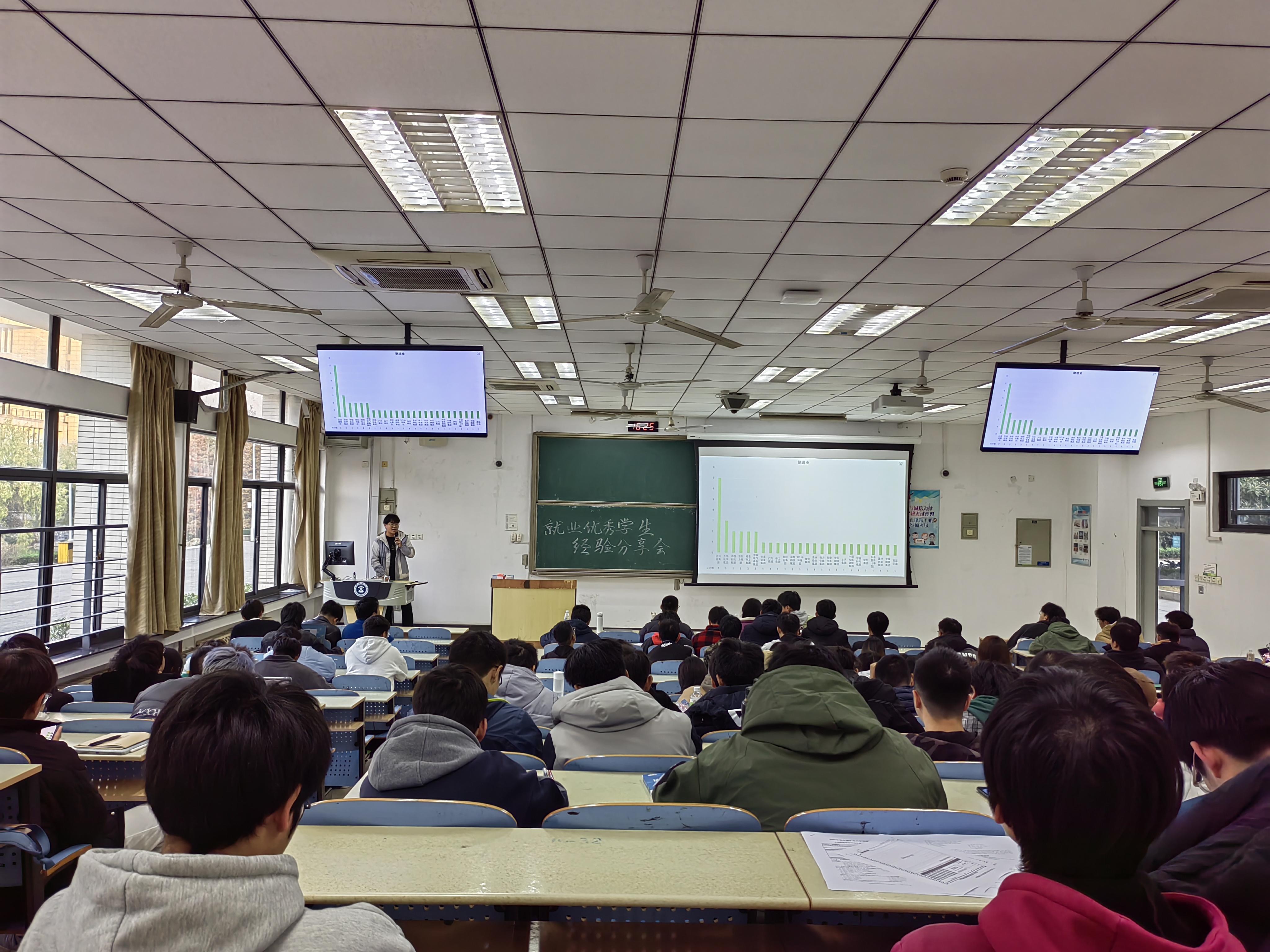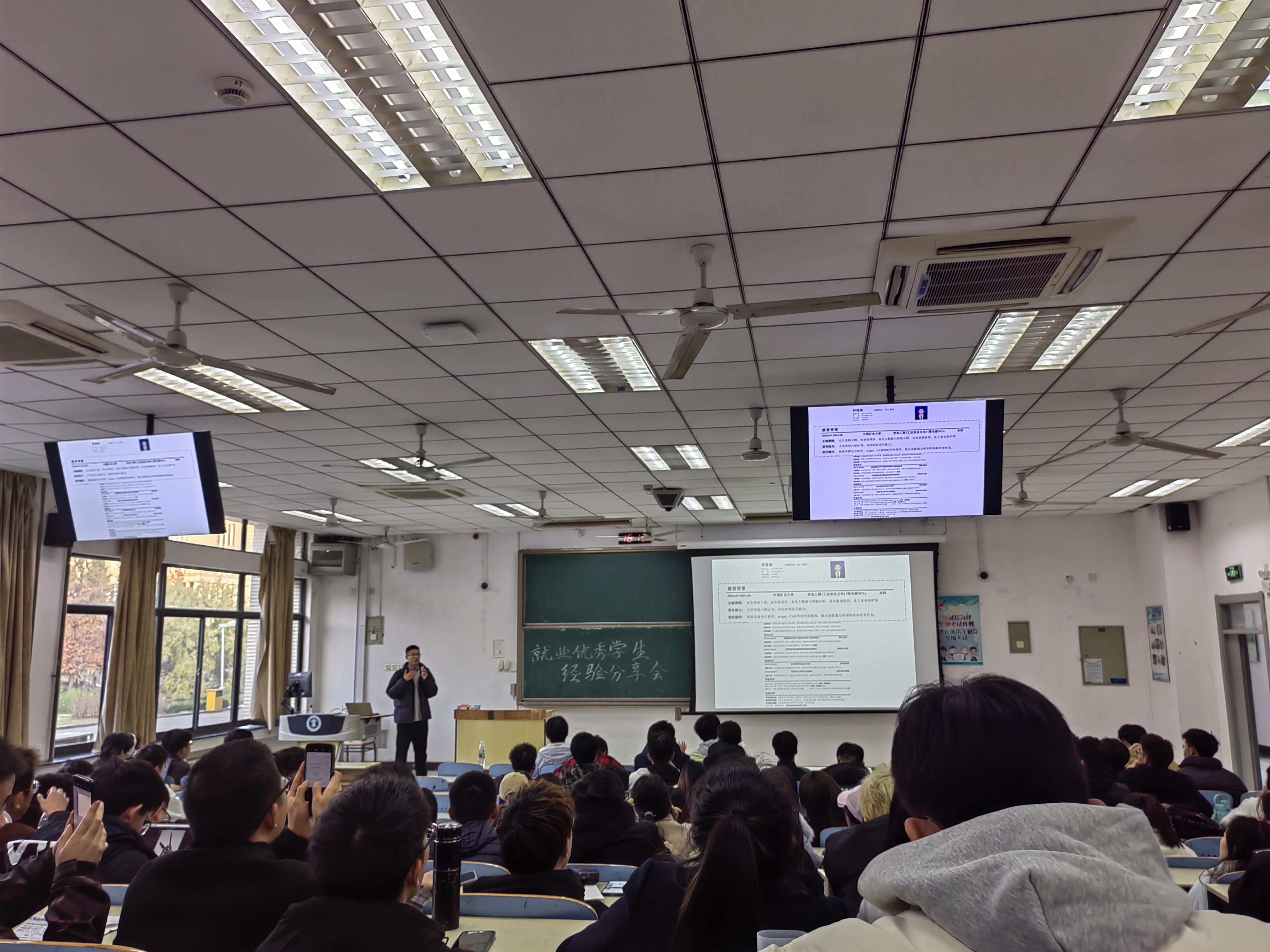 林建楠讲述了自己大三选择考研到大四决定就业的原因,提醒同学们审视自己考研的初心,是真正对科研有一颗热爱之心,亦或是想要提升自己还是迷茫的随波逐流;林建楠还细致讲解了求职简历的制作包括从教育背景、实习经历、项目经历、校园经历、荣誉奖项、自我批评等方面编写。汪官腾解读了目前就业形式,分析了自己收集的几所优秀公司数据,教各位同学如何寻找秋招信息,打破信息差。金心怡就“女生就业”讲述了自己的求职经历,告诉准备就业的同学们要树立求职自信,提前做好求职准备,避免自我怀疑和精神内耗。徐世龙重点介绍了外企和国企的面试和求职的区别,强调了学好英文的重要性,分享了要如何做好就业意向单位的抉择与取舍。讲座最后,就业优秀代表鼓励与会同学在大三学年要继续努力学习,拿到优异成绩,利用寒暑假的实习锻炼自己的能力,最后一定能找到自己心仪的工作。