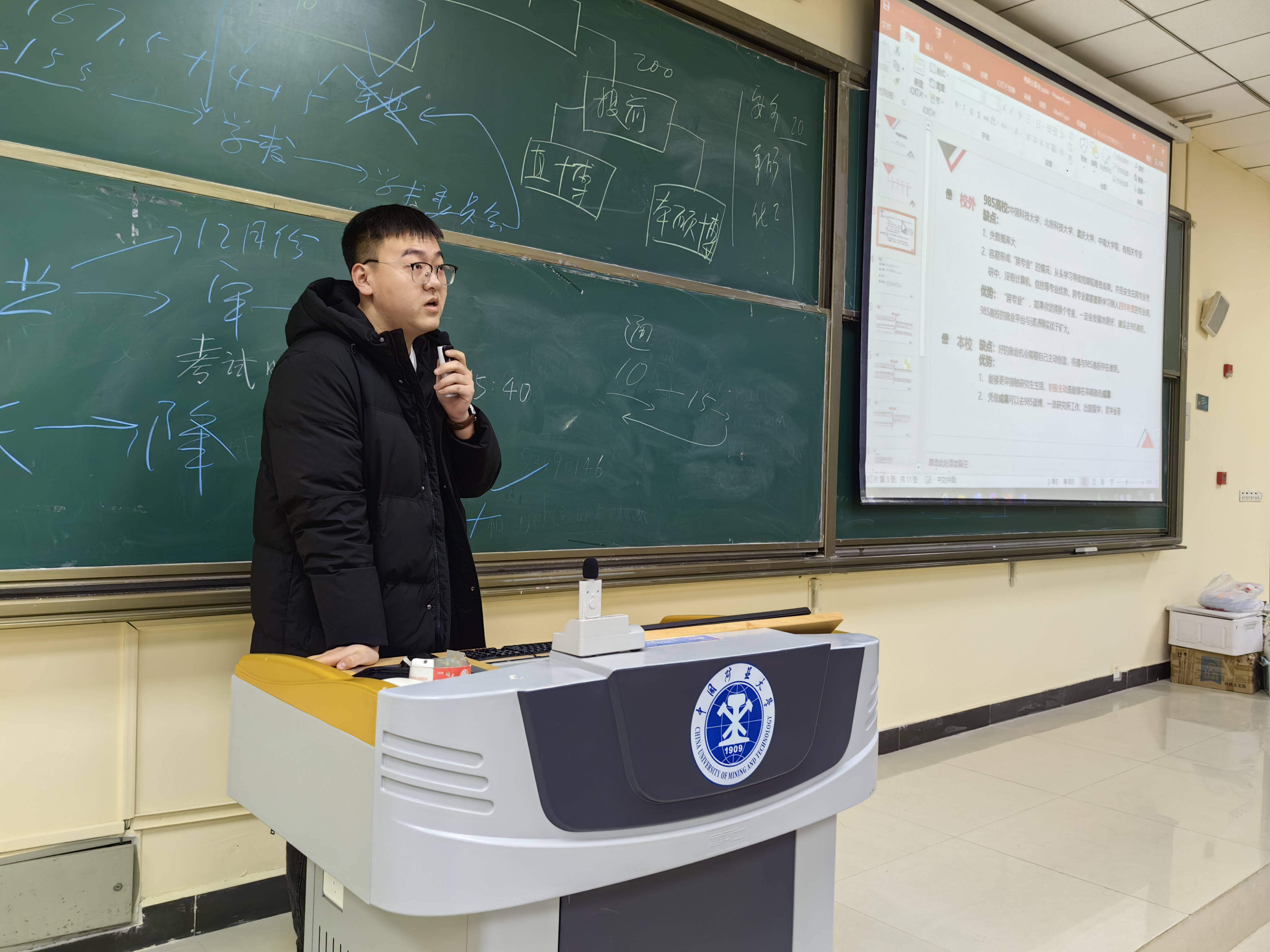 随后,张国富、刘雨浩和张藤镨向大家分享考研经验。张国富提供了考研期间总体时间的规划,并推荐了实用的网络课程和全年用书,提醒同学们要在心态上和功课上做好双重准备。刘雨浩在考研院校选择上为大家提供建议,分享了自己的复习时间线和做题时间表。张藤镨重视考研心路历程,提醒同学们要清楚自己考研的目的要保持积极健康的心态,不要有畏难心理,不要焦虑。最后,刘世通老师做了寒假相关安排的通知。