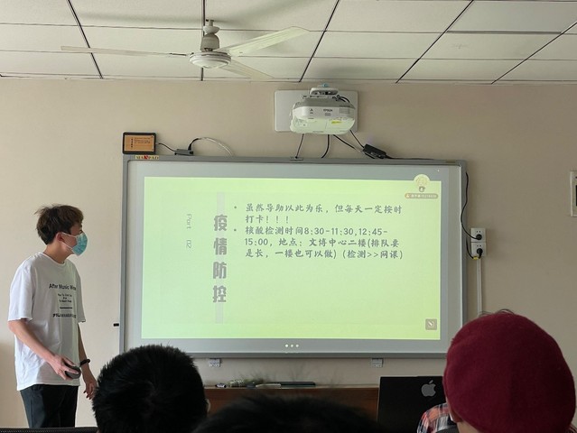 会议开始,班长薛宇豪先向同学们强调了当前疫情的形势,突出了防疫工作的重要性,并提醒同学们在疫情防控期间,做好个人疫情防护工作,尽量避免在人员密集处活动,减少外出次数,配合学校工作,坚持日报告打卡。之后,薛宇豪对上学期的学习成绩进行了回顾分析,他向同学们反复强调,成绩是保研的决定性因素,是大学生的生活主基调,是未来考研的垫脚石,甚至关系到是否能够顺利毕业,勉励同学们在五一假期中及时复习,查漏补缺。最后,薛宇豪为同学们播放了励志视频,鼓励同学们要趁大好青春不懈奋斗,追求梦想。