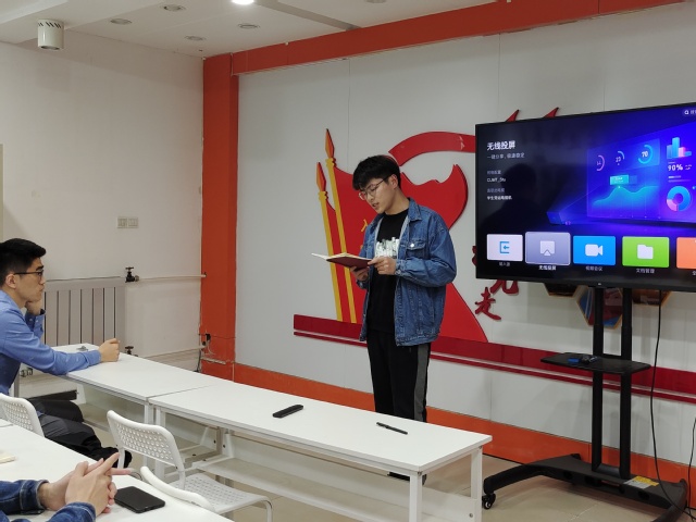 活动伊始,主持人介绍了本次活动的主题—“开天辟地-五四青年运动”。接着张国富同学结合自身经历,讲述了五四运动的背景及意义,带领同学们回顾了“五四青年运动”的起因、经过和结果,让我们体会到了革命先辈们的热忱与坚强。活动最后,同学们在听完党史介绍后有感而发,并分享了感悟。