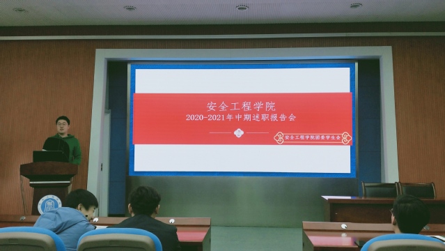 学生会于3月13日下午三点在矿业科学中心举办学生会2020-2021年中期述职报告会。19级辅导员李钰、学生会指导老师孙一伟和六位主席团成员担任此次中期述职报告会的评委,学生会各部门部长进行述职展示,全体学生会干事到场进行交流与学习。