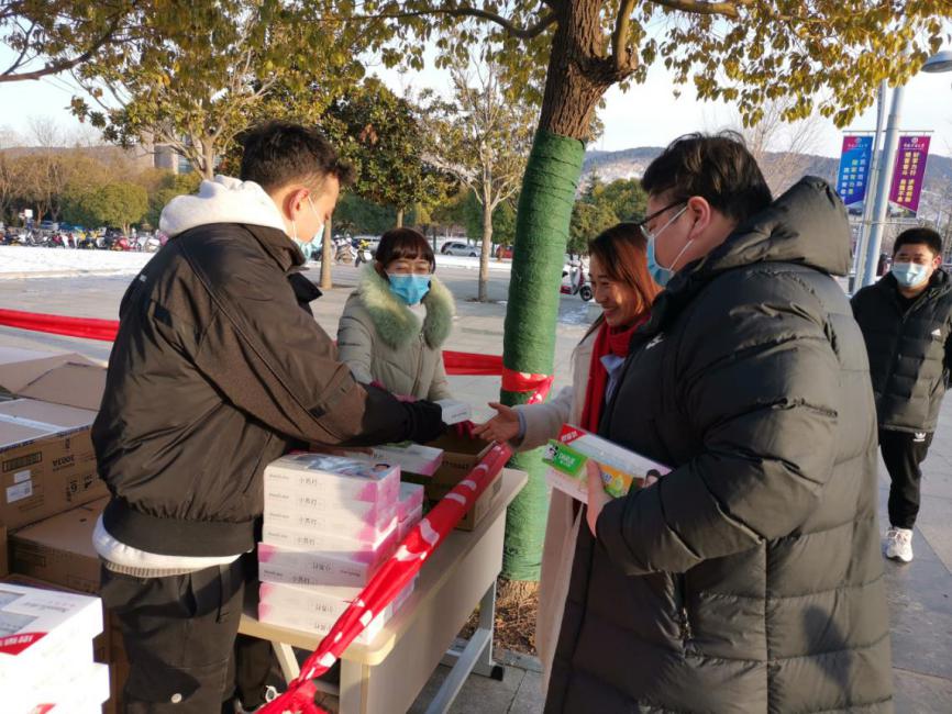 积极配合校工会活动,派出本科生党支部十名志愿者在健步走终点为各位教职工派发礼物并献上新年问候。