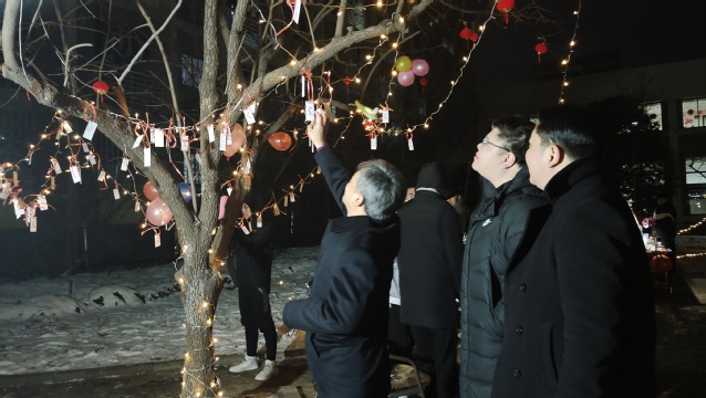 工作组于梅三平台、庭院及党工委办公室举办了迎新年系列活动。校党委副书记蔡世华,学生工作处处长冯震,校团委书记谢发国,学生工作处副处长李德福,校团委副书记徐彤彤一行到梅3学生社区党工委为同学们送上了新年祝福。院党委副书记孙留涛,全体专兼职辅导员共同参加活动。