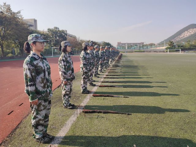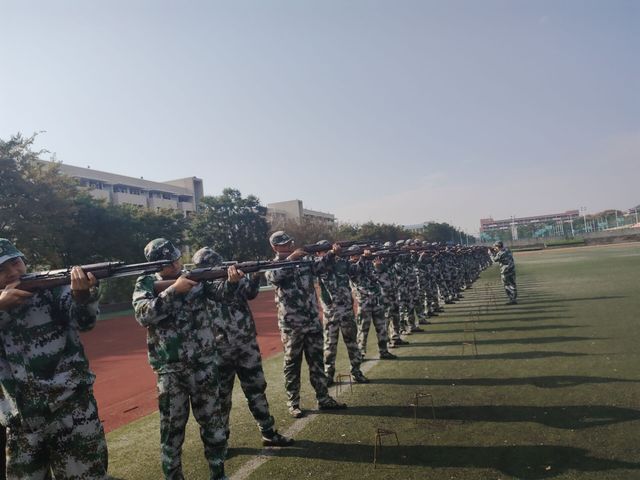 全体新生在教官的带领下,于学校东坡运动场进行了新生打靶射击训练。