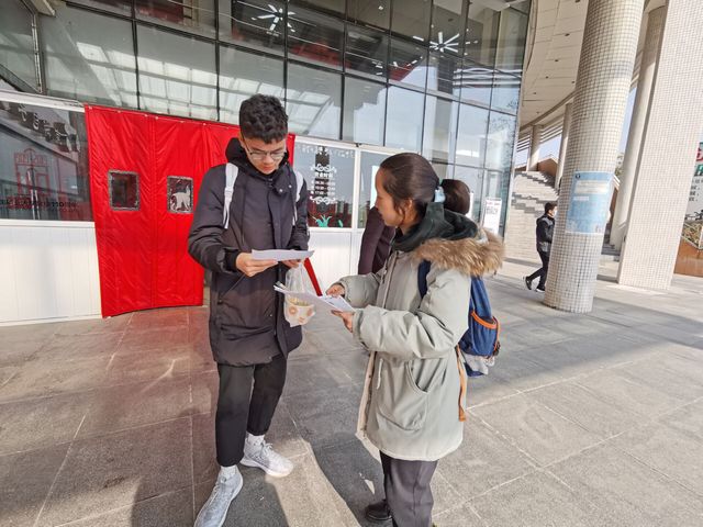 中午12点,宣传活动正式开始。宣传人员通过发放宣传页的形式,为同学们讲解爱心义卖工作的内容、流程和宗旨,呼吁更多同学关注义卖公益活动,提高传递爱心理念。