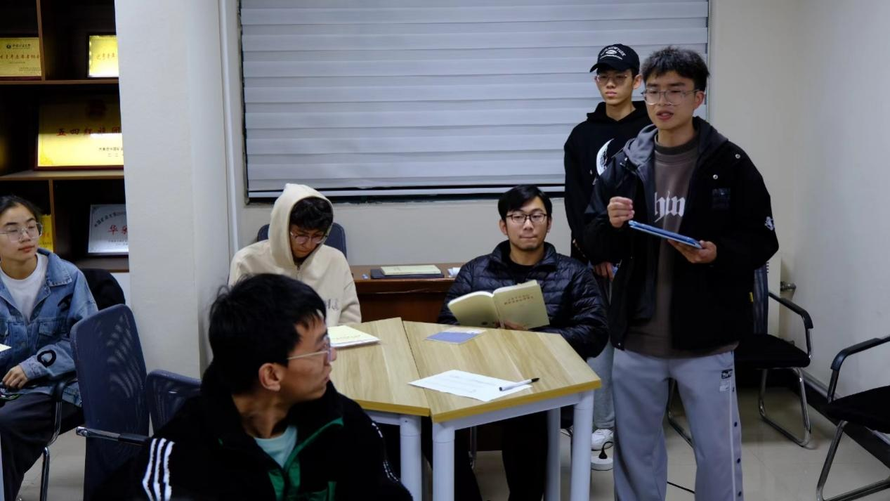 为进一步弘扬爱国主义精神,激励学生坚定理想信念,传承红色基因,3月26日晚7点,我院学生党员工作站在行健书院力行轩开展了“阅读 悦享”读书分享会。本次交流会由学生党员工作站知行社举办,知行社社长许正阳主持,22级入党积极分子参加。