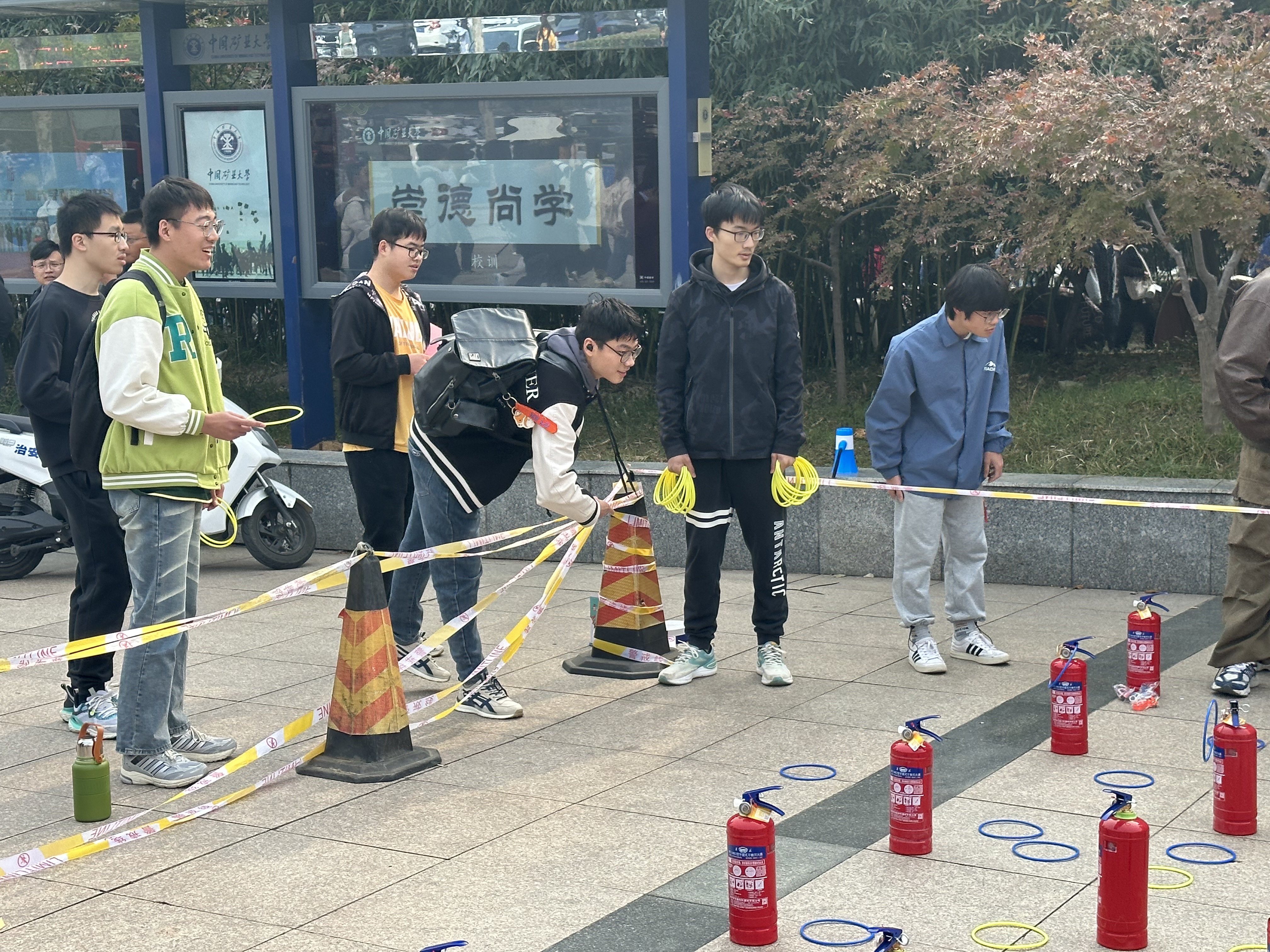 本次“119”消防安全月活动现场设置有火灾“逃生屋”体验、心肺复苏技能学习、消防器材展示与体验、消防水带“保龄球”、消防标识识别、灭火演练六个寓教于乐的体验项目,在“打卡”完成上述项目后,可以通过“套圈夺宝”环节赢得“新国标”电插排、印有消防知识的玩偶、灭火器水杯、钥匙扣等消防文创用品。每一个展示区都有专业的消防员给师生讲解消防器材的使用方法。在实践方面,师生可以进入“逃生屋”,模拟感受火灾发生时的紧张氛围,学习逃生方法,还能亲自动手实施心肺复苏和急救操作。针对理论知识方面,现场设有消防标识挑战赛和消防创意海报作品展览区,让大家学习消防常识。同时,师生还可以亲身体验消火栓连接、穿戴消防战斗服、背空气呼吸器、打消防绳结等,增强对消防装备的了解。