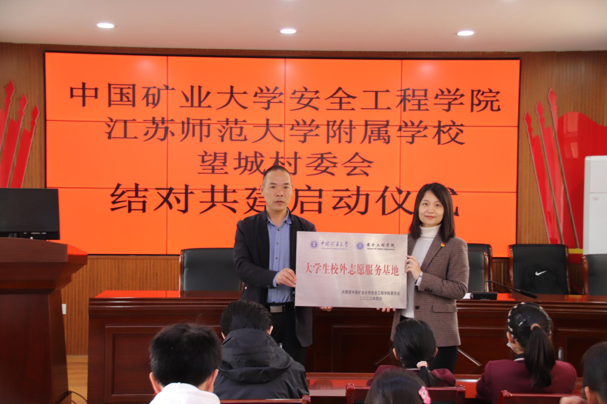 、江苏师范大学附属学校、望城村委会”三方结对共建仪式正式启动,铜山街道望城村委会主任袁振虎对我校师生的到来表示热烈的欢迎和感谢。他指出大学生进社区实践活动,开启了新时代推进社区与高校活动共建新篇章,期望以“大学生校外志愿服务基地”这个平台为契机,加强社区与高校联动。我院团委书记郭佳表示大学生校外志愿服务基地的成立为大学生学习、生活提供了优异的条件和平台,有机会将自己的所学服务社会,在基地共建中彰显青年干劲,展现青年作为。