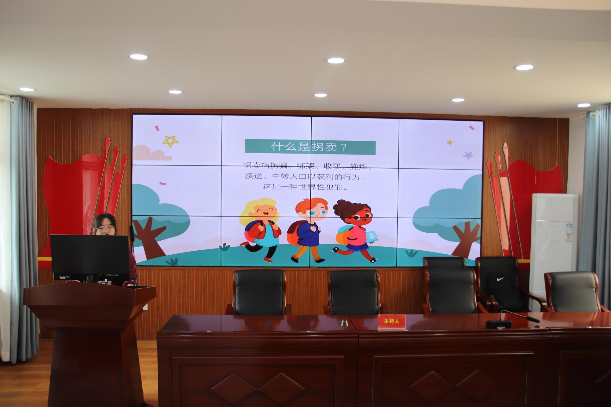 仪式结束后,本次主题活动以“组队闯关”形式进行,由志愿者搭配小朋友进行分组。在分好组后,先进行名字接龙游戏,以加强志愿者和小朋友们之间的认识。活动第一项为“预防儿童拐卖安全教育宣讲”,在宣讲过程中,宣讲人以问答的方式调动小朋友们的积极性,如“坏人拐卖时的惯用招数”“独自一人在家时应该怎么办?”“若陌生人自称是亲戚拉你走应该怎么办?”等。第二项是“寻找生活中的危险”,宣讲人通过幻灯片上的图片提问小朋友们图中有哪些电气危险,小朋友们争先恐后地举手并一一找出了图片中的问题。最后进行了火灾逃生演练,志愿者利用制烟器模拟火灾现场,在大哥哥姐姐们的指挥和陪同下,小朋友们用湿巾捂住口鼻、低头有序进行火灾逃生演练。