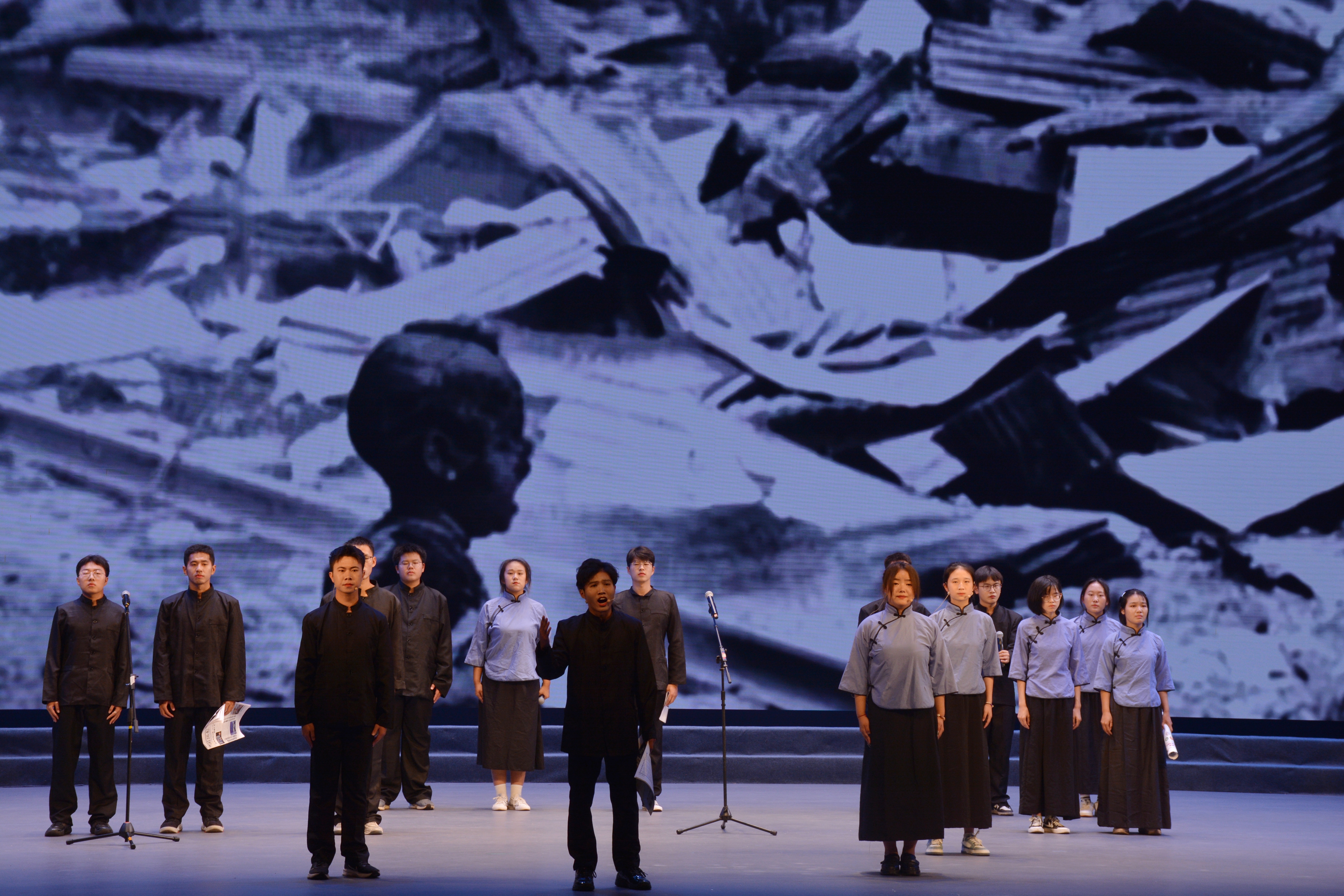 参加。我院《可爱的中国》节目以小剧场、独诵、小组对诵,齐诵等多样的表现形式搭配音乐、灯光、舞蹈,声情并茂地讲述了抗日战争的发生的英雄故事,通过近代和现代朗诵的对话,激励广大青年要勿忘国耻,勇立青春之志向,不断增强爱党爱国情怀。参赛选手陆良杰表示:“为期一个月的排练让我更加理解团队协作的重要性,在排练作品的过程中进一步增强历史使命感,做好中华经典的传承与创新,为实现中华民族伟大复兴贡献青春力量”。