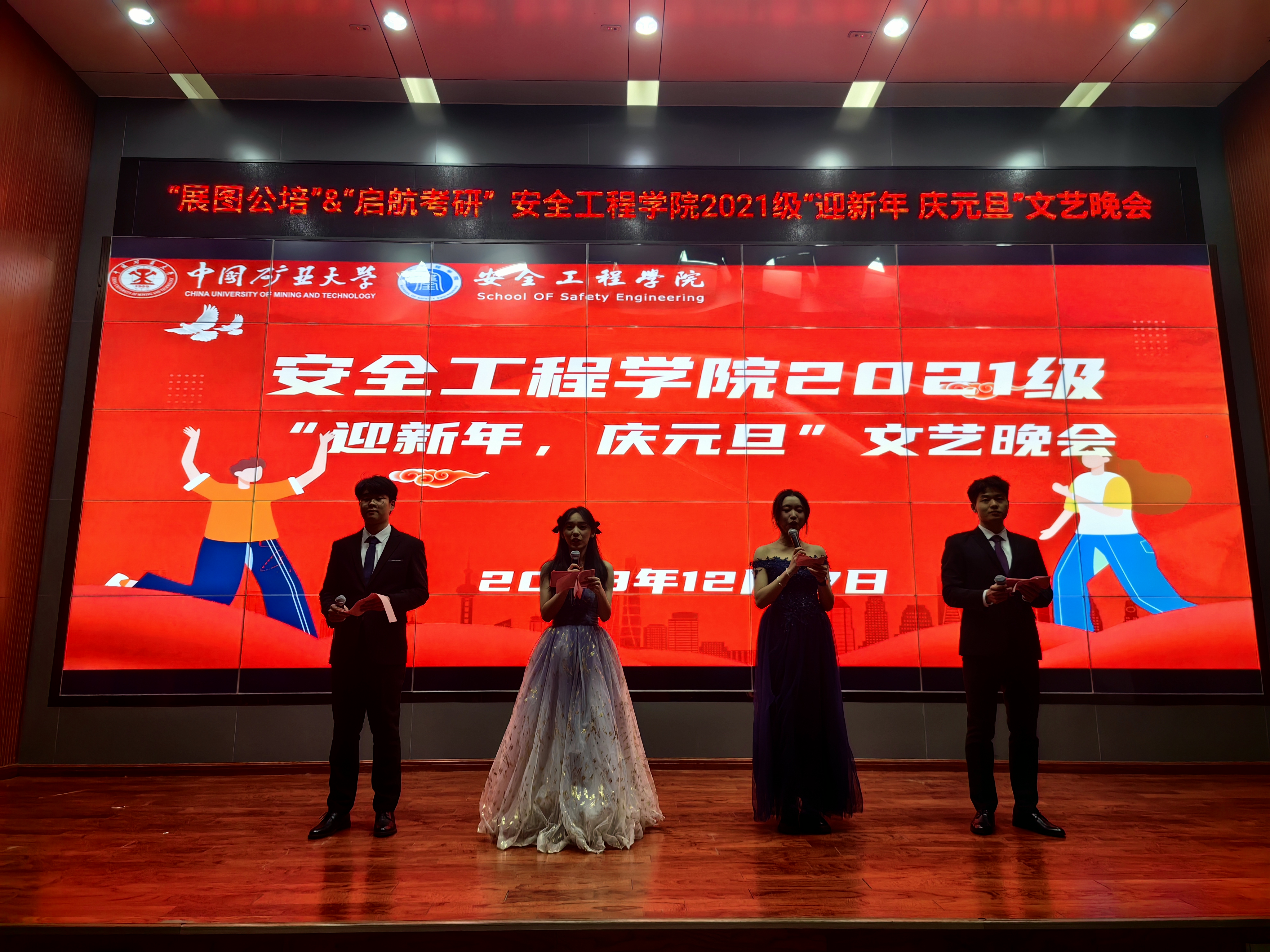 为进一步丰富校园文化生活,营造积极健康向上的校园文化氛围,12月17日晚7点,我院2021级举办了“庆元旦,迎新年”文艺晚会,学工办主任、2021级辅导员刘世通,2021级部分行政班主任以及我院部分专兼职辅导员参加本次晚会。