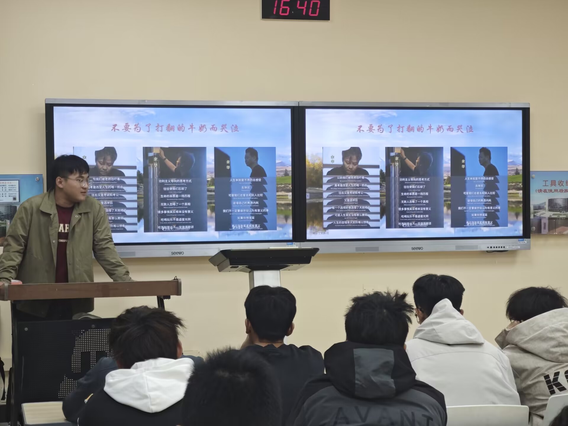 在各班级的心理班会活动形式丰富,精彩纷呈,有的班级以“心灵解压站”为主题,组织了趣味十足的心理小游戏,如“你比划我猜”,游戏中同学们分两组,一人比划一人猜,比划者通过肢体和表情传递信息,现场欢笑不断,同学们也在轻松愉快的氛围中释放了压力;有的班级从短片《泥人》《蒲公英》出发,围绕生命价值与自我接纳分享感悟,让同学们在交流中增进理解与包容。活动结束后,同学们纷纷表示此次活动让自己受益良多。一位同学感慨道:“之前我在学习和生活中积攒了不少压力,但通过这次班会,感觉一下子轻松了许多。”