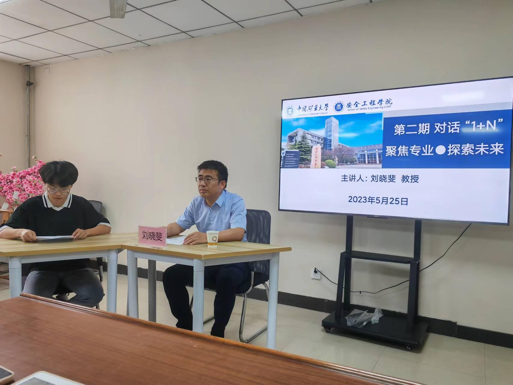 校选择、科创能力培养、职业发展规划等多方面展开。访谈伊始,刘晓斐教授分享了自己从本科到博士阶段的矿大求学经历和毕业留校后的科研发展历程,勉励大家珍惜本科学习时光,抓住发展机遇,做好个人生涯发展规划。刘教授表示大学四年学习的知识深刻影响一个人的职业生涯,一定要在大学阶段夯实学业基础,掌握专业技能,才能在祖国需要的地方建功立业。随后,刘晓斐教授结合安全未来发展前景从社会需求、科研实力、学科建设、人才培养等多方面展开讲解。接着,刘教授谈起学生比较关心的升学择校、导师选择、是否直博等后续规划问题,他表示同学们要整体把握信息、理性分析思考,明确发展目标,结合自身性格特点充分发掘自身优势,避免盲从努力跟上环境变化的脚步,选择适合自己的道路。针对科研能力培养,刘教授鼓励立志科研的同学们要把握大四这段空窗期,提前进入课题组,多与导师交流,尽快确定自己的研究方向,除此之外还要坐得住冷板凳,深耕专业发展,增强自己的基础理论和综合能力。