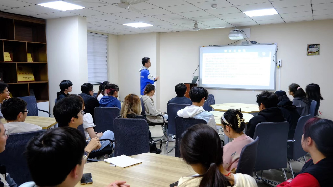活动伊始,殷凌霄以“积跬步,致千里”为主题,结合自身经验,向同学们提出针对性建议。第一,摆脱“水课”观念,容易及格不等于内容无用,同学们应端正学习态度,认真对待每一堂课程。第二,多去图书馆或者公教学习,多走几步路去一个效率高的场所,所带来的效益是不可估量的。”第三,要有主动性,积极主动联系老师,参与大创等竞赛活动,全面提升个人综合能力。第四,积极参加学生工作,学生工作可以锻炼大家的个人能力,提高自身优势,但一定要注意要合理分配学习和工作时间。第五,处理好人际关系,保持良好人际关系可以丰富自己的校园生活。接着,符亮亮以“看见光,追随光,散发光”为主题,从学习、科研竞赛、校园生活等多方面向同学们分享了自身经历。学习方面,符亮亮表示自己在学习过程中注重“想,查,看,写,说”,以此提高学习效率;科研竞赛方面,他建议多和老师沟通学习,汲取经验,一步一步脚踏实地去做科研竞赛;生活方面,他认为学生工作可以丰富同学们的大学生活,帮助大家增长见识,开拓视野。最后他鼓励同学们不吝发光发热,传递好手中的接力棒,传递知识经验可以将信息输入转化为信息输出,这本身就是一次再学习再进步的过程。最后,他真挚地祝福同学们在热爱中努力成长,在探索中成为更好的自己。
