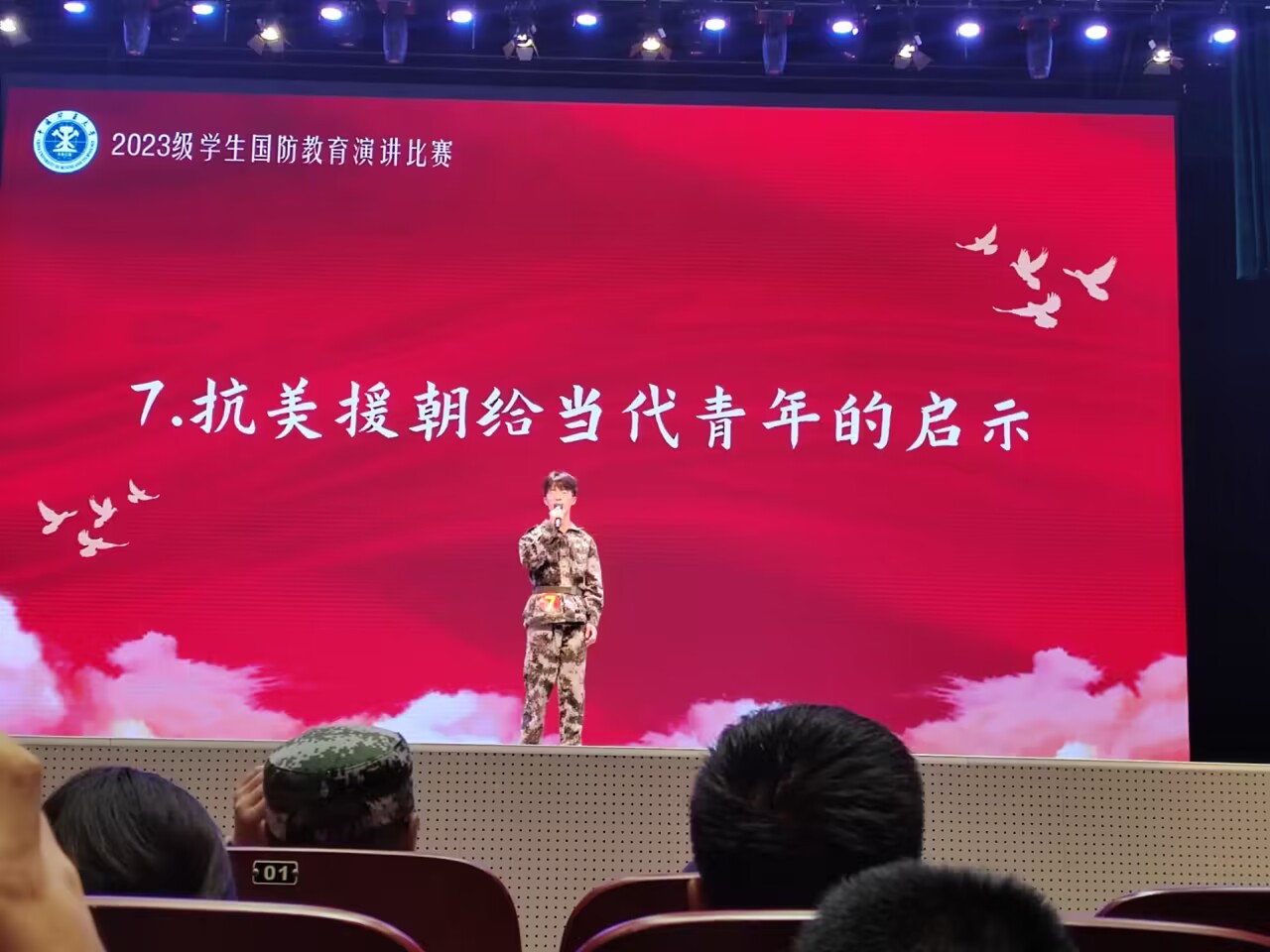 演讲现场,马路博同学踏着坚实的步伐迈上讲台。在十天军训的艰苦磨炼下他的目光坚定,透露出青春与自信。演讲正式开始,马路博同学首先指出当代青年人接受军训的重要性。然后,他列举了从古至今的将军与烈士们勇赴疆场、杀敌报国的事迹,表达出自己愿意把青春献给祖国、守护祖国大好山河的决心。接着,马路博同学结合自身经历和感受,针对互联网上“这一代年轻人,还有不计生死的血性吗?”的问题,作出了肯定的回答。最后,马路博同学作出当代青年“应怀青云志,热血铸就军魂”的总结,完满结束了本次演讲。