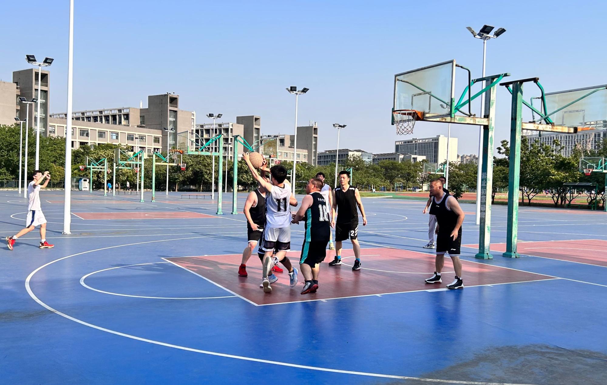 为增进毕业班师生情谊和同窗友谊,给即将离开母校踏上人生征程的毕业生们留下一份美好的回忆,同时进一步彰显毕业生积极向上的精神风貌,6月10日下午四点,我院在梅苑运动场举办毕业班师生篮球赛。此次比赛由我院党委书记曲颂、副院长刘晓斐、教师代表以及十余名毕业生代表参加,比赛分为四节,每节计时十分钟。