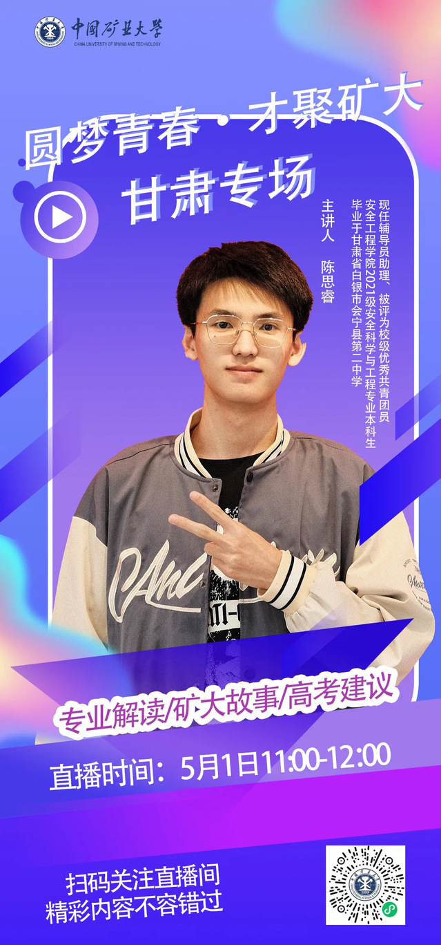 “圆梦青春·才聚矿大”五一招生宣讲会甘肃、新疆专场,其中2021级陈思睿、刘若桐两位同学分别负责直播讲解。