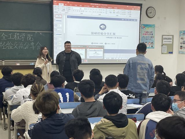 于博一C102组织开展保研经验交流分享会。此次活动由研究生会邀请2018级袁满、刘晓琴、鲁佳明三名同学分享他们的保研经历。学工办主任刘世通、2019级兼职辅导员孙林林以及各年级有意向保研的同学参与了本次活动。