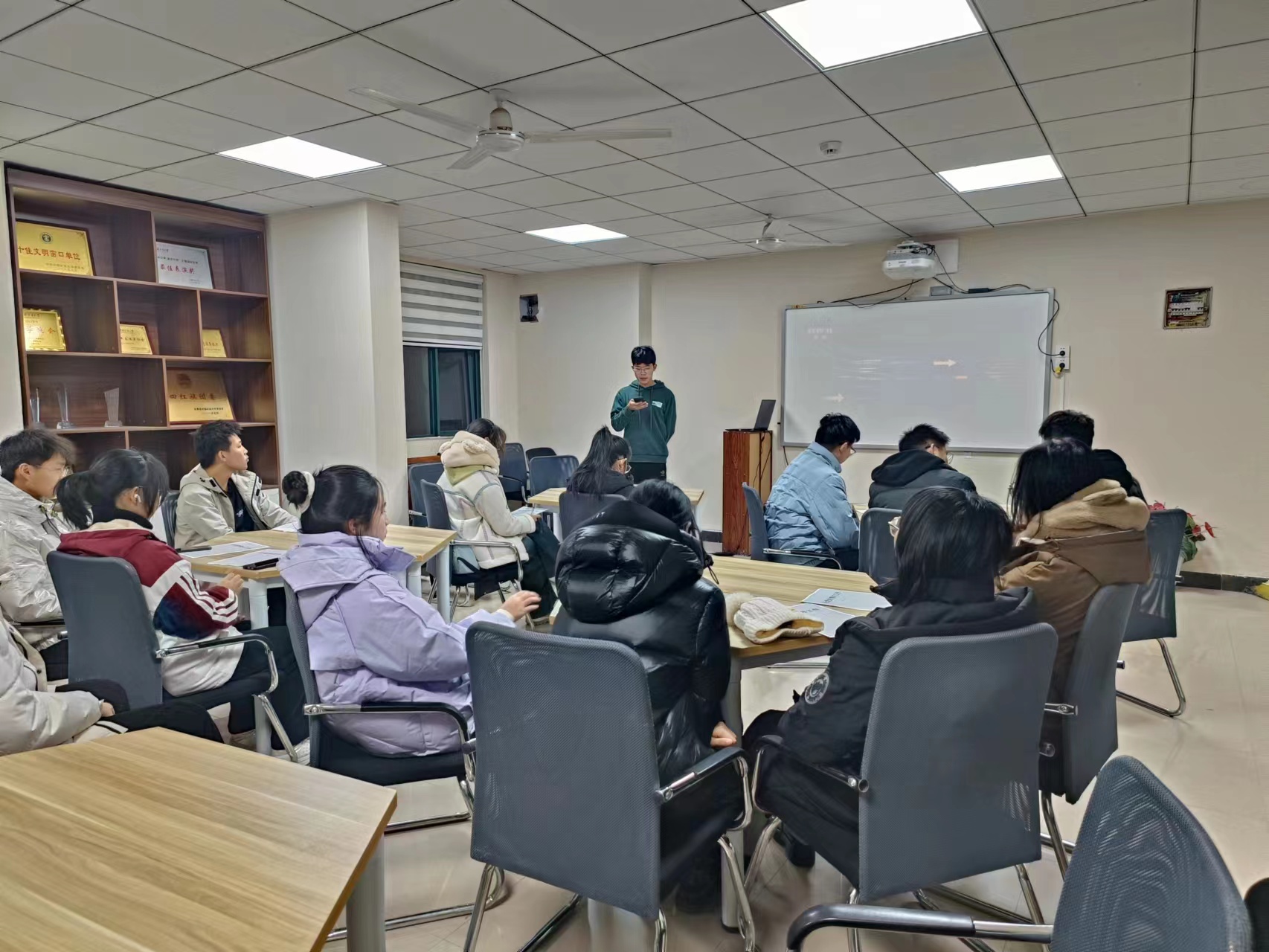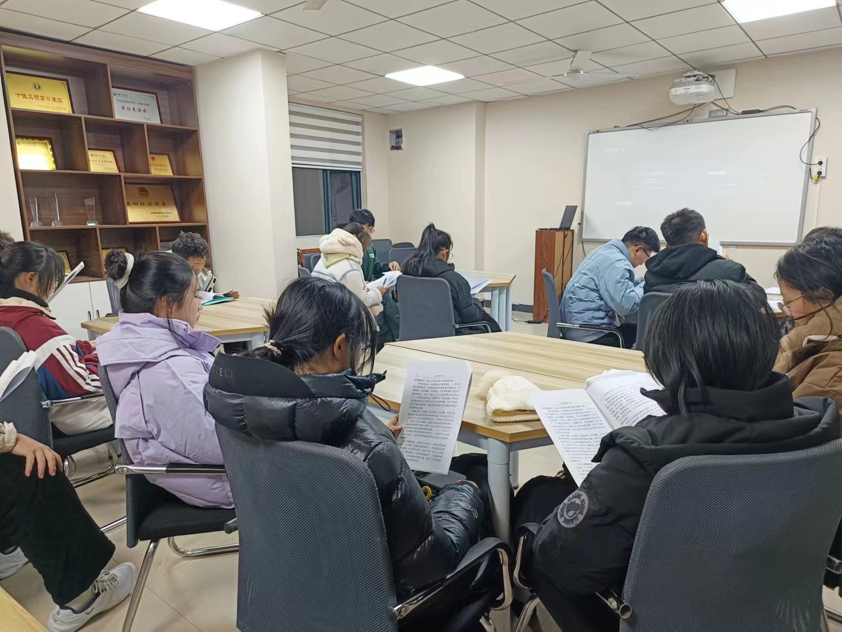 12月17日晚7点,我院学生党员工作站知行社于力行轩开展"阅读,悦享"读书交流会,知行社成员刘玉卓同学担任此次活动的主持人,我院2023级全体积极分子参加本次活动。