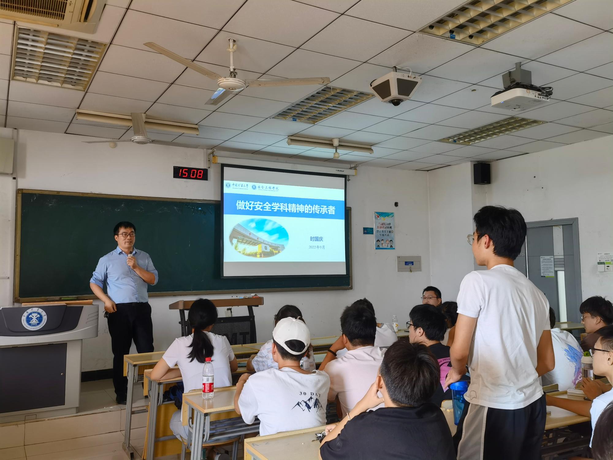 首先,时国庆教授给大家讲述了安全工程专业的发展历程,同时还强调了安全是发展重点,是国民经济不可或缺的一部分。紧接着,时国庆教授阐述了作为安全行业工作者、研究者要有担当、有责任、对安全问题具有透彻的了解,事关生命还要有更高的家国情怀。时国庆教授准确细致地分析了作为安全学科工作者应该拥有的学科精神。随后时国庆教授对如何做好安全学科精神的传承者提出了三个步骤,第一是要树立远大的人生目标便于在今后的大学生活中有目的有方向地去努力。第二是重视大学的课程学习、课堂实践。严格要求自己完成学习目标。第三是尽可能多参与科研实践活动及各种学科竞赛、创新创业大赛,便于提早训练科研素养和技能,有益于思维开发,增加对课外知识的掌握的深度和广度。活动最后,时国庆教授还回答了同学们关于“大学生创新创业与互联网+、挑战杯竞赛等区别”等问题并提醒同学要以积极乐观的心态,脚踏实地的努力奋斗。