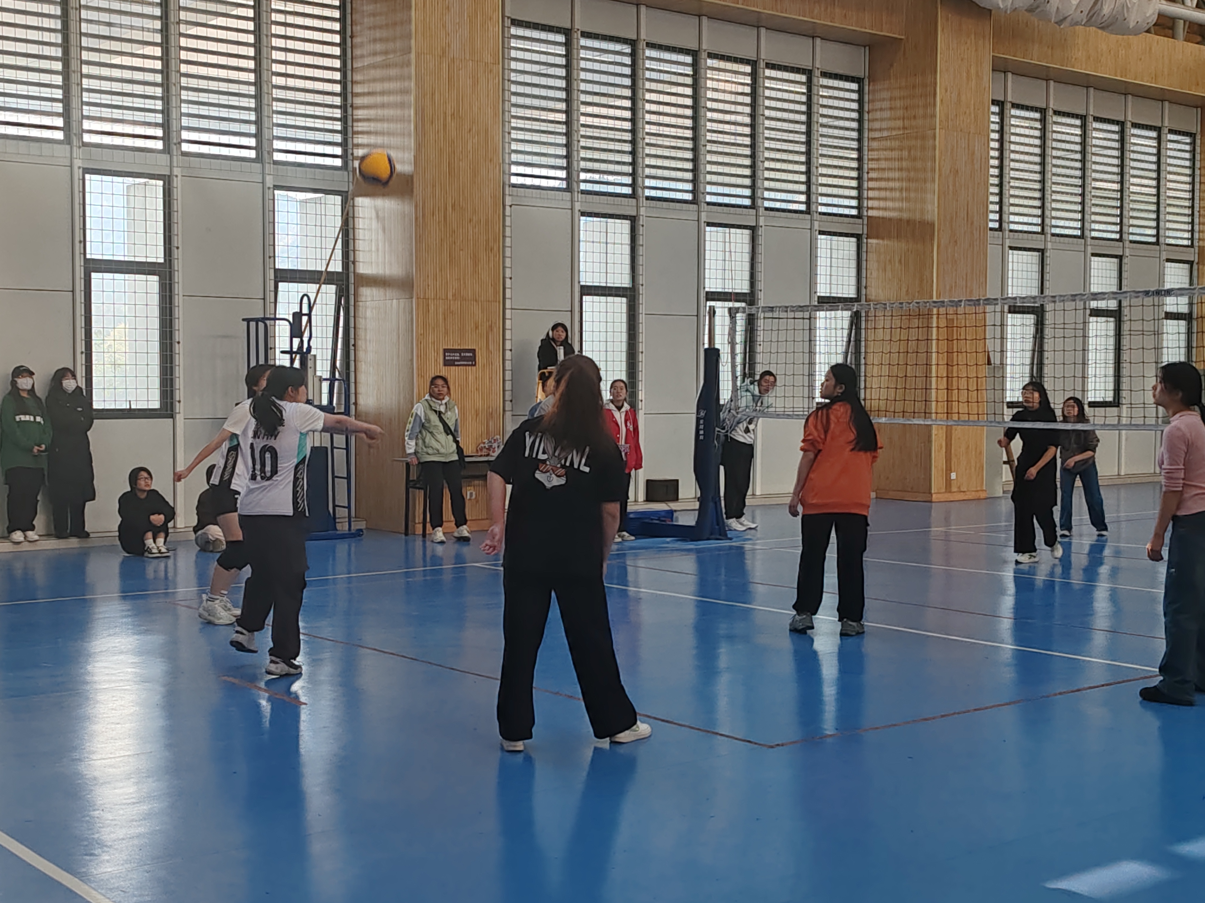 率先发球,我院排球队积极迎战,配合默契。战况紧张激烈,双方一来一往,你攻我守,比分你追我赶,最终,我院凭借团队之间紧密的配合,在女排冠军争夺赛中夺得冠军。