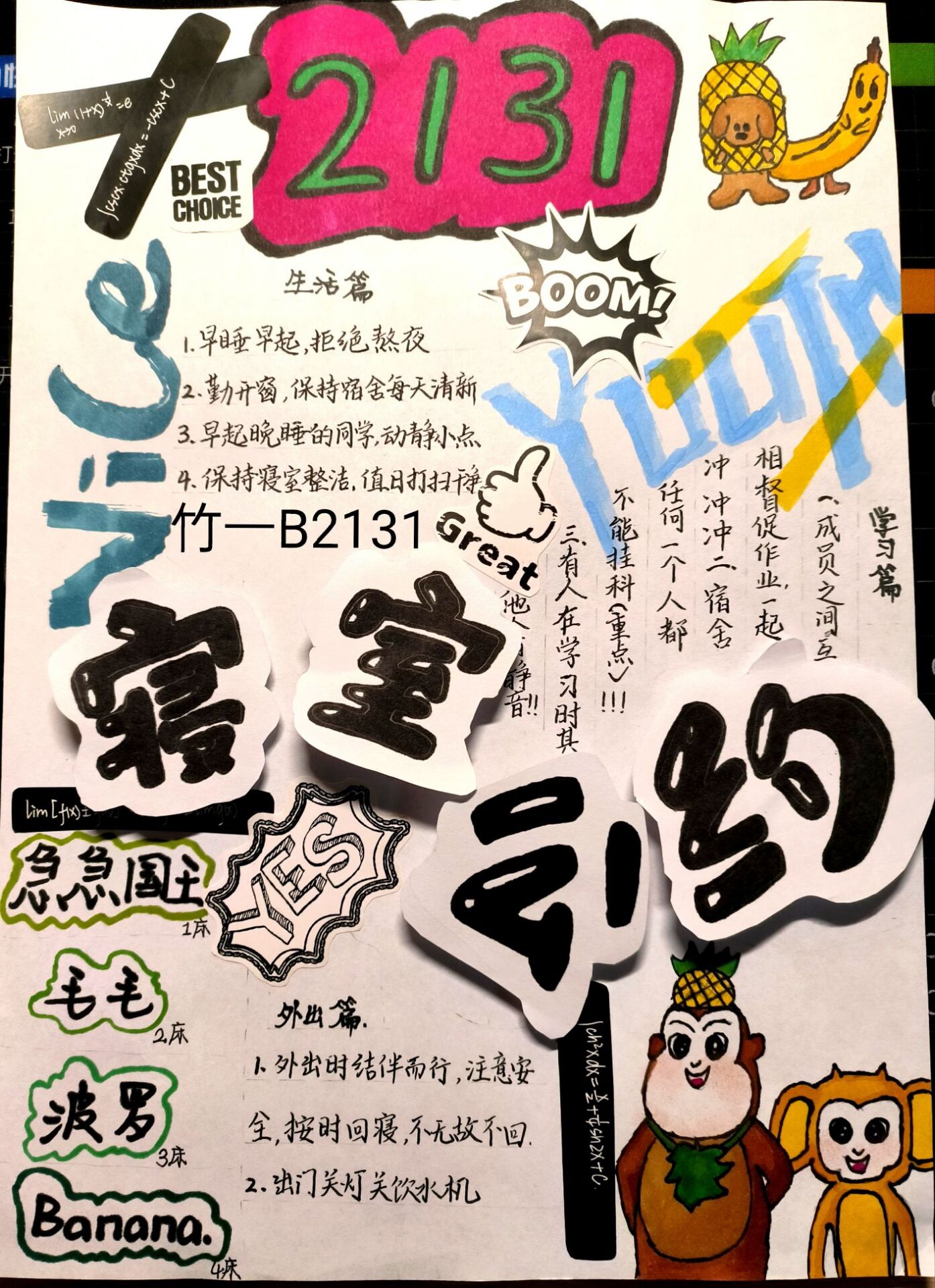 为营造和谐温馨的寝室氛围,我院团委学生会生活权益部携手院心理自助中心、新闻宣传中心于10月3日至10日开展宿舍公约设计比赛。