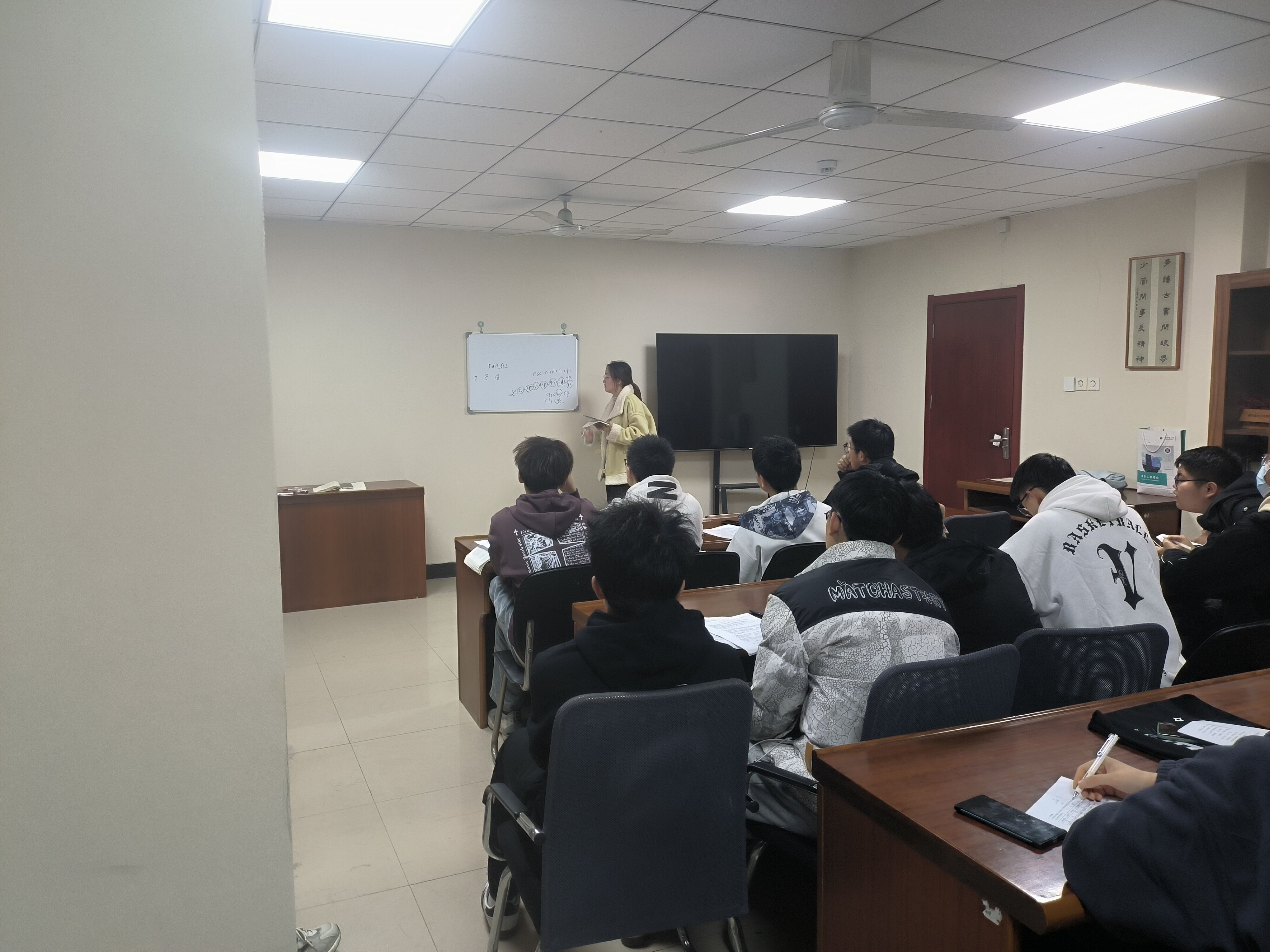 12月6日傍晚18:30,同学们陆续进入考场,寻找自己的座位并打开书安静地复习。晚上19点整,考试正式开始。在考试期间,考场上秩序井然,纪律严明,同学们认真地伏案作答。每隔一段时间,学习部的监考人员便会提醒在座考生考试的剩余时间,以便同学们能够合理地安排考试时间,不慌不忙,从容作答,更好地发挥出自己的全部实力。晚上20:45,监考人员将试卷有序收回,模拟考试正式结束。次日晚上19:00,国产精品