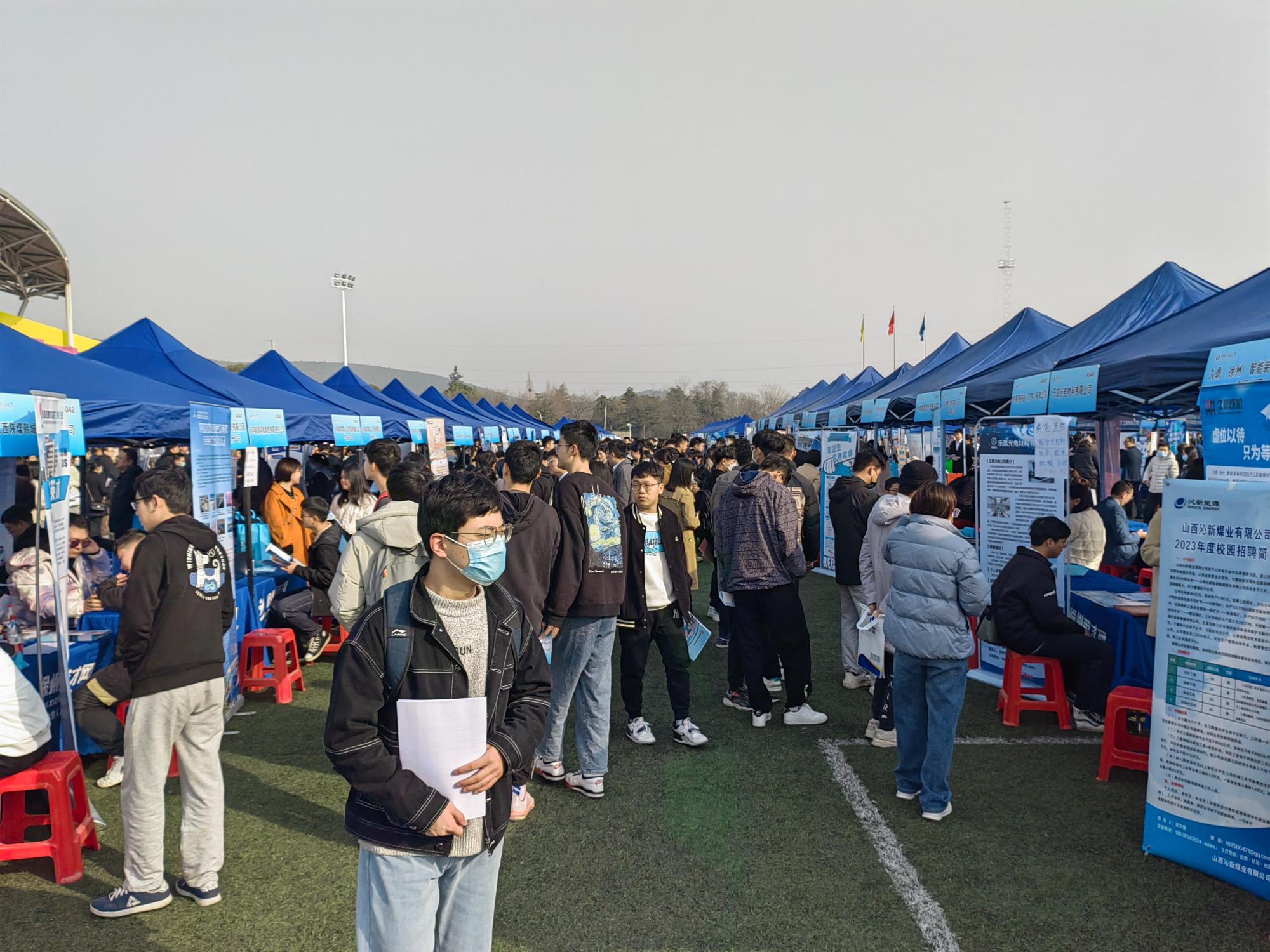 2023届毕业生春季校园“双选会”在南湖校区第一运动场举行。我院积极组织2023届毕业生参加此次“双选会”。