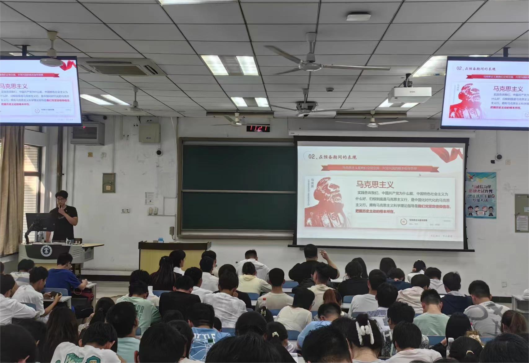 活动伊始,19名预备党员结合校庆与扎根学科主题,展示了成为预备党员以来在思想上,生活上,工作中,学习中取得的成绩亮点,并对自身不足之处和发展规划和做了认真总结。俞嘉濠深受家乡红色思想和革命精神的熏陶,不断提升自己的党性修养;李孟阳积极参与志愿服务,志愿时长达百余小时;唐佳旭不断加强思想淬炼,明确入党动机,永葆共产党员本色。汇报结束后,刘世通老师与赵厚宽老师对每一位汇报同学预备期间的表现进行了评价和肯定,激励各位同学始终牢记自己的党员身份。活动最后,在场全体老师和同学共唱校歌。杨腾锐带领全体党员重温入党誓词。