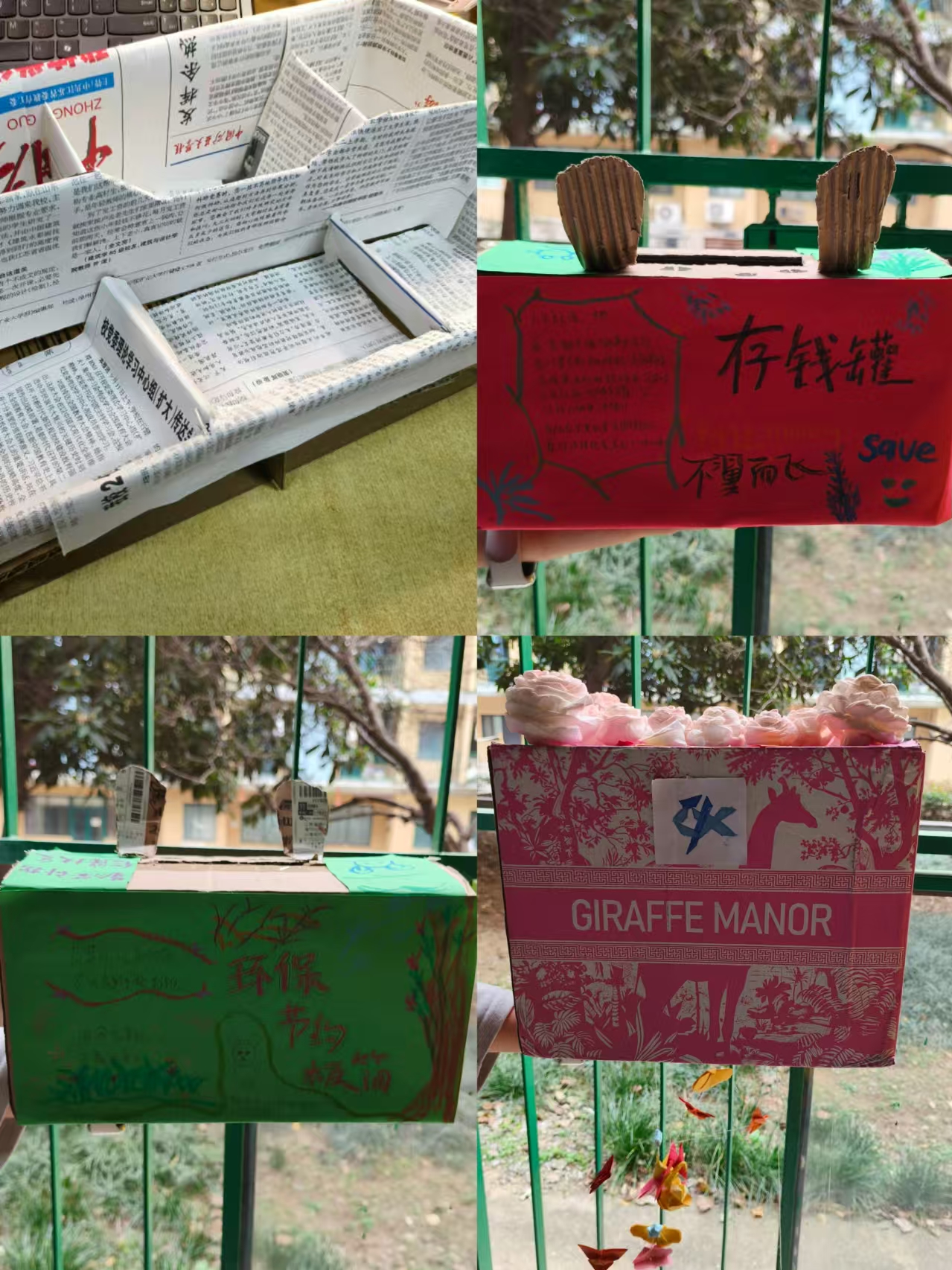 本次活动吸引了众多学生积极参与,同学们围绕快递纸箱的回收与再利用,紧密结合生活实际,充分发挥想象力与创造力,呈现了一系列令人眼前一亮的作品。在作品创作阶段,他们收集周边的废弃快递纸箱,依据纸箱的材质、形状与大小,精心构思设计方案。有的选手将纸箱巧妙裁剪、拼接,制作成实用的书架、储物盒等生活用品,不仅赋予了纸箱新功能,还为宿舍生活增添了环保气息;有的运用绘画、贴纸等装饰手法,将纸箱变成充满艺术感的手工艺品,如卡通人偶等,展现出了独特的创意与审美;有的将快递纸箱做成了精美温暖的小窝,让流浪的小猫有了一个安身的地方,十分暖心……一件件作品不仅展现了参赛者们的巧手匠心,更体现了绿色环保与生活美学的完美融合,充分体现了纸箱再利用的无限潜力。