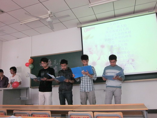 傍晚五点整,参赛选手纷纷到场并进行抽签确定出场顺序后,本次朗诵比赛正式开始。一首动人的配乐诗朗诵《母爱赞歌》将大家引入了一段感人至深的对母亲的回忆之中,安全10-1班四位男生将对母亲的深沉的爱以一句句真挚的诗句,一段段深情的表白娓娓道来,在场观众无不屏息凝神,静静聆听。和着起伏婉转的音乐,采矿09-4班的余忠业同学深情倾诉对母亲的孝心敬意,表达对母亲的无限感激与美好祝愿,温暖了众人心田,触动了在场观众的心扉,博得了阵阵热烈掌声。接下来的朗诵过程中,无论是离别或是团圆,无论是愧疚还是思念,淡淡的诗传达绵绵的爱,绵绵的爱透着深深的情,深深的情捎来浓浓的意。所有人都沉浸在了这份感动之中,选手们将祝福送给母亲。