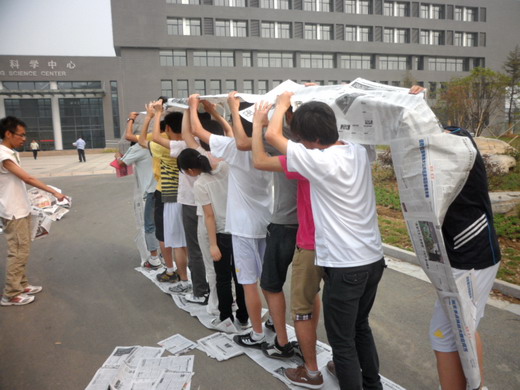 正值主题团日活动开展之际,为丰富同学生活,增添校园乐趣,培养协作能力,锻炼逻辑思维,近日,由我院心理自助中心,女生部和科协共同主办的“寻宝集结号”活动在三食堂广场隆重举行。我院09、10级所有班级均组队参加了本次集结号活动。