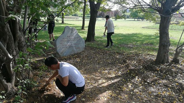 6名志愿者在活动负责人陈愚老师的带领下,在思源井开展扫井维护活动。首先负责人陈愚老师给同学们介绍了活动的流程和要求,然后将同学们进行分组,之后同学们便前往自己的活动区域开始清洁和维护。在活动过程中,同学们将思源井附近区域的水瓶与纸屑果皮等垃圾收集起来,并将它们分类后丢至垃圾桶。在清洁的过程中,尽管石碑很难清理,但他们没有放弃,耐心地将碑面上的泥垢一点点擦去。在同学们工作的同时,负责人也在检查同学们的工作情况,并提醒同学们对不完善的地方继续进行处理。经过一个下午的时间,思源井附近的卫生条件和基础设施得到了明显的改善。