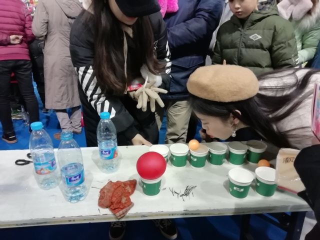 负责的趣味游戏区位于体育馆B区二层,举行的游戏项目有:吹乒乓球、护送气球、含水猜歌名、投掷乒乓球、弹弹球、飞鸽传书。参与活动的不仅仅是学生,还有许多走进矿大校园感受跨年氛围的人,玩家在了解游戏规则后,积极参与游戏。