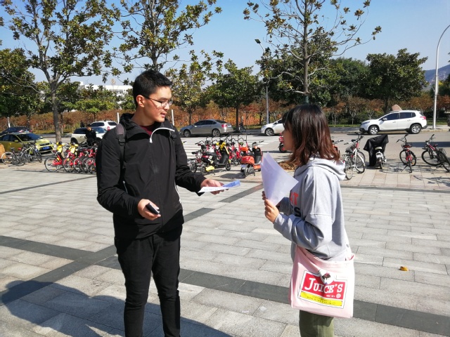 中午12时,参加“爱在红叶、旧衣深情”活动的宣传人员准时在三食堂广场集合展开工作。首先,他们将印制好的海报发放给过往的同学们,简单地说明了活动的内容和意义。本次活动是徐州红叶小动物救助站徐桂芝女士向社会各界寻求帮助,需要棉被衣物来为小动物建一个温暖的家。据悉,徐州红叶小动物救助站是徐桂芝女士于 2012 年发起和主办的救助流浪动物的民间组织,徐桂芝女士自费救助流浪动物多年,并为流浪动物倾注全部的心血和财力。徐女士表示:“我们希望大家能够为红叶小动物救助站提供帮助,我们相信,通过我们的努力,会让小动物们过一个温暖的冬天。”虽然中午天气寒冷,但看到宣传人员在寒风中积极地宣传,赶时间的同学们虽然不能听到宣传内容,却也接过宣传单,边走边读或是耐心地听工作人员的宣传。