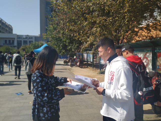 心理自助中心在三食堂门口协助宣传“求学路,故乡情”新生交流活动,帮助同学们感受家乡的气息,让大家共同分享中学的回忆。