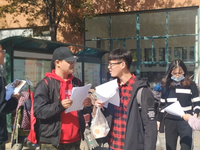 中午12时准,志愿者们准时来到三食堂门口开始宣传。据悉,此次“求学路,故乡情”活动要求参与活动的同学以ppt的形式上交一份介绍自己家乡的作品,向大家介绍自己家乡的美食、美景与文化。以期达到新生相互认识,拉进彼此距离的目的。志愿者们井然有序地开展活动,积极宣传本次活动。尽管正值中午吃饭的时间,但志愿者们毫不在意。他们忍受着饥饿,在阳光下拿着传单,一遍又一遍耐心地向路过的同学宣传活动的内容,以求更多人可以了解并参加到这个活动中来。从人来人往的高峰期一直到所有人吃完离去,志愿者们一直面带微笑,尽职尽责。