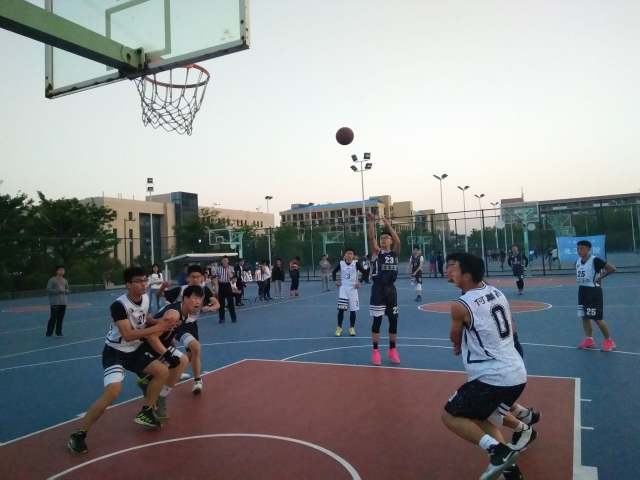 篮球队队员展现了安全学子顽强拼搏,团结合作的体育精神,促进了队员之间的交流合作的默契程度,为观赛者呈现了一场精彩的比赛。