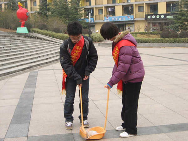 青年志愿者协会于3月2日在二食堂广场积极开展了“清除卫生死角 共建美丽校园”志愿活动。活动中,我院志愿者对二食堂广场进行了环境维护。
