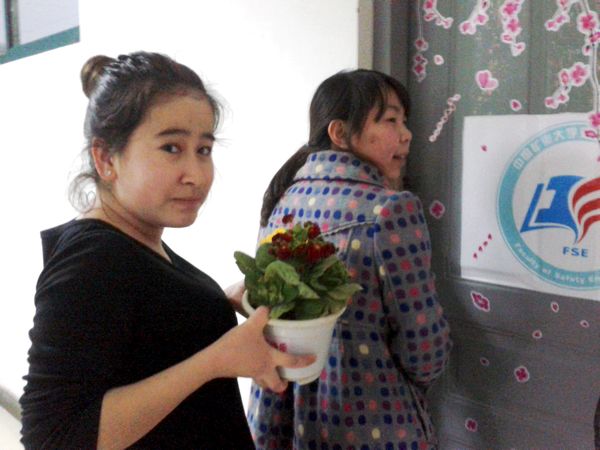随着清脆的敲门声,我院女生迎来了节日里的第一份浪漫惊喜。门一打开,出现的是,手捧鲜花、笑容灿烂的女生部男干事们。他们亲手将鲜花送给每个女生,并亲切地祝福她们节日快乐。接着女生部的干事们纷纷将对女生们的祝福写在准备好的彩色气球上,并用这些气球精心装饰了每个女生宿舍,希望将这份祝福传递给每一位女生,同时也祝愿女生们在属于自己的节日里过得更加愉快而充满意义,使她们在繁忙的学习生活中获得一份温暖与关怀。接收到祝福和礼物的女生也微笑着向他们表示了感谢。