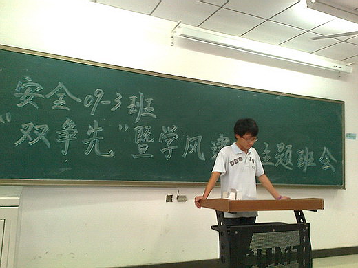 中期学风建设精神,切实做好班级学风建设工作,我院安全09-3班在教五A408举行了“双争先”暨学风建设主题班会,安全09-3班全体同学参加了此次会议。