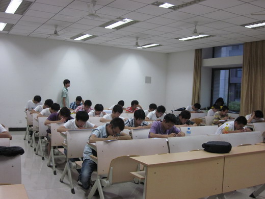 考试一开始,全体同学准备就绪,监考人员按次序为同学们分发试卷。同学们拿到试卷后不慌不忙,将题型大致浏览一遍后方才答题,努力做到落笔时胸有成竹。考试期间,考场秩序井然,气氛严肃,同学们纷纷认真做答,俨然已经把此次模拟考试当作正规考试来对待。考试结束后,同学们纷纷提出自己未解答的题目,并相互做了深入的探讨,共同交流题目解法以及考试心得,此次模拟测试解决了同学们不少的疑虑。考试历时近一个半小时后顺利结束。