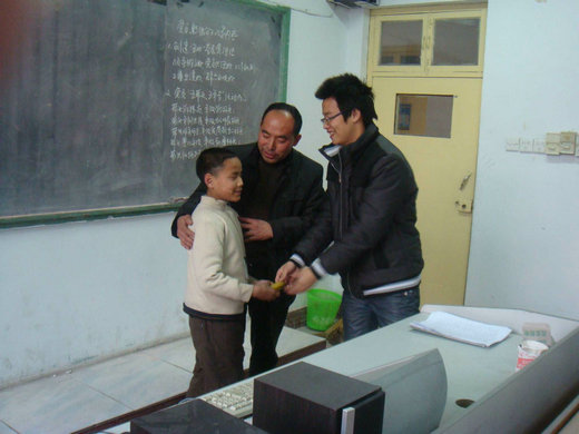 下午一点整,全班同学准时在学校北门集合,经过近两个小时的车程,同学们来到了徐州市特殊教育中心。特教中心的周主任热情地接待了同学们并给大家介绍了这里一群特殊孩子平时在教育中心里的学习、生活情况,随后又强调了和孩子们交流时应注意的问题。接着,在周主任的带领下,同学们来到了一个正在上课的三年级教室。孩子们对到访的同学感到格外欣喜,同学们走上前去给每一个孩子分发了糖果、水果并亲切的与他们交谈。虽然彼此年龄差距很大,但并不影响相互之间的沟通,小朋友们个个都热情洋溢,兴奋不已。一个名叫王帅的双目失明的七岁小男孩拿出自己的盲文课本,自告奋勇为同学们朗诵了一段课文。之后,在周主任的组织下,所有的孩子们和全体同学一起来到一个多媒体教室,自由的进行交流。孩子们积极的为大家带来了葫芦丝表演、笛子独奏等节目,同学们也频频鼓掌喝彩,赞扬小朋友精彩的表演,鼓励他们再接再厉,并给他们赠送了精美的小礼物。同学们也给小朋友们表演了很多精彩的节目,班内两名新疆同学表演了新疆舞蹈,一个叫周星东的双目失明的小朋友主动和居彦青同学一起合唱了歌曲《隐形的翅膀》。虽然这里的孩子们都存在着弱听、弱视或失明等方面的疾病,但他们天真、灿烂的笑容点燃了每一位同学心中爱的希望,他们快乐和自信的眼神使每一位同学都为之感动。下午五点钟,在与小朋友们合影留念后,同学们告别了特校的老师和小朋友们。