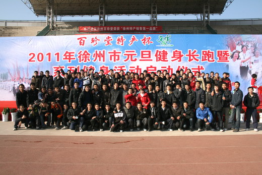1月1日上午,2011年徐州市元旦长跑活动在市体育中心田径场成功举行,来自全市67家单位83支方队参加了活动。我院辅导员刘筱婕老师、李成刚老师带领近百名09、10级同学代表我校积极参与此次长跑。
