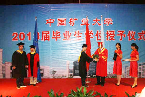 都希望他们今后能够更加努力,为母校争光。而后,章毛平书记与毕业生握手表示祝贺,并亲切细心地为每一位毕业生拨流苏,一起在院旗下与其合影留念。葛世荣校长亲自为毕业生们颁发学位证书。葛校长与每一位毕业生握手道贺并亲切地与他们在校旗下合影。