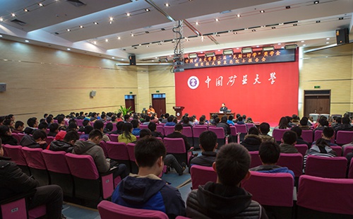 周世宁院士列举了去年的昆山“8•2”爆炸事故以及前几天发生的上海外滩踩踏事故,强调安全科学在社会生活中的极端重要性,并结合自己的成长经历,阐述了矿大“学而优则用,学而优则创”的培养理念,勉励同学们要勤于思考,努力学习,在科学的道路上不断攀登。