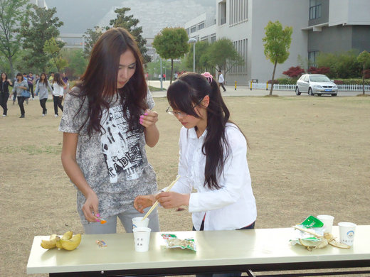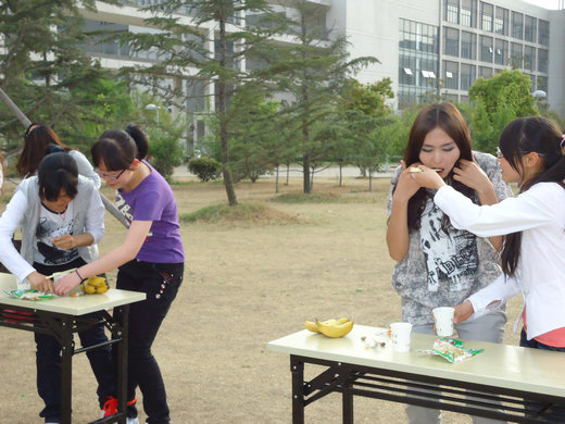 为丰富我院女生课余生活,增进彼此的沟通与了解,我院女生部于4月27日下午5点在教五草坪举办趣味“食”物比赛。本次比赛由女生部部长孙鹏飞、副部长唐玉华主持,来自我院四个女生宿舍的近二十名女生参加了比赛。