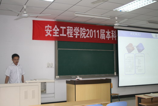 6月19日至20日上午,我院2011届本科毕业论文答辩工作在教4-A301、302、401、402、403五个教室全面展开。来自我院安全工程与消防工程共两个专业的145名毕业生参加了答辩。