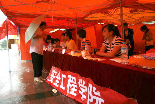 领导带领迎新师生一直坚守在工作的最前沿,鼓励大家将迎新工作进行到底。10级辅导员孙留涛老师即使身患感冒发着高烧,也一直坚守岗位,带病继续开展迎新工作。